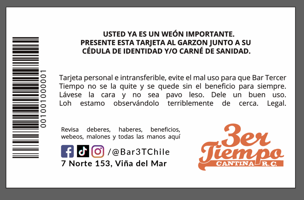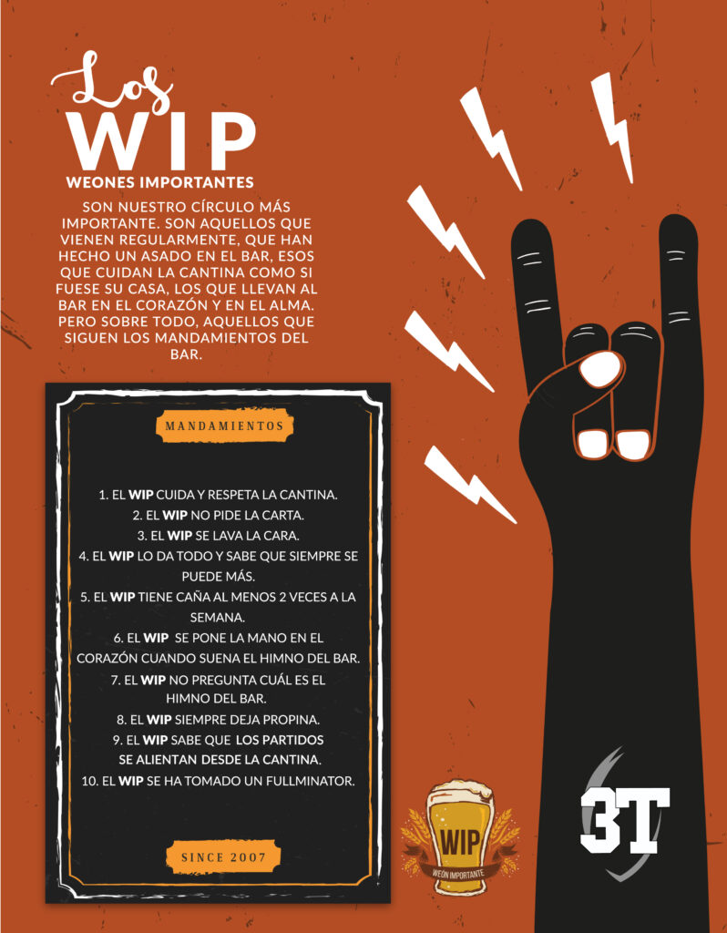 Los WIP son clientes especiales –Weones Importantes– que van muy, muy, muy seguido al bar, y por lo mismo, los premiamos con descuentos especiales para ellos durante todo el año.